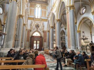 Il pubblico è stato trascinato nell’avvolgente e drammatica storia di una delle donne più affascinanti della Napoli del Cinquecento, Maria d’Avalos, e alla scoperta dei luoghi della basilica di San Domenico Maggiore che reca traccia di questo passaggio.